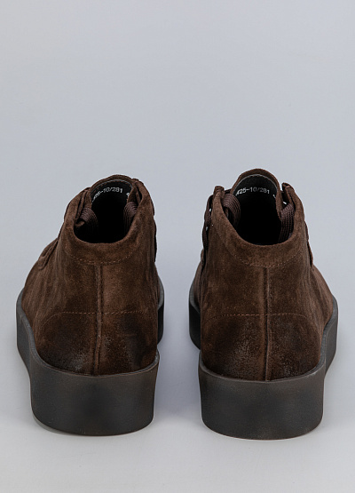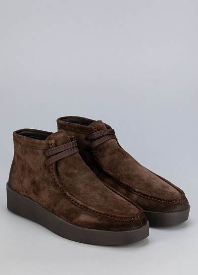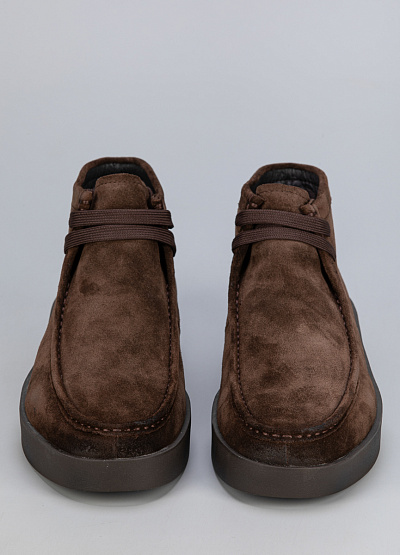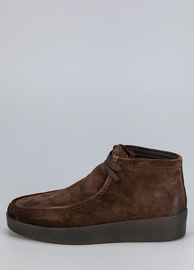 Мужские утеплённые ботинки Duca Daretti выполнены из мягкой коричневой замши, создающей аккуратный и универсальный образ. Благодаря невысокой шнуровке модель удобно фиксируется на ноге, а внутренняя подкладка обеспечивает комфорт в прохладную погоду. Лёгкая и амортизирующая подошва делает обувь практичным выбором для повседневной носки.