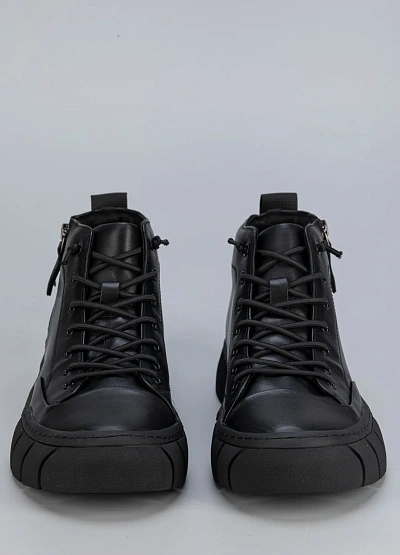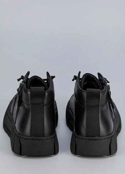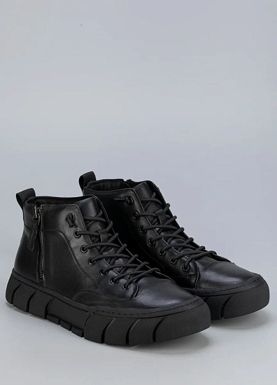 • Мужские черные ботинки Mattini из натуральной кожи с утолщённой подошвой и боковой молнией — отличный выбор для тех, кто ценит практичность и стиль. Минималистичный дизайн с элементами спортивного кроя делает эту модель универсальной для гардероба.