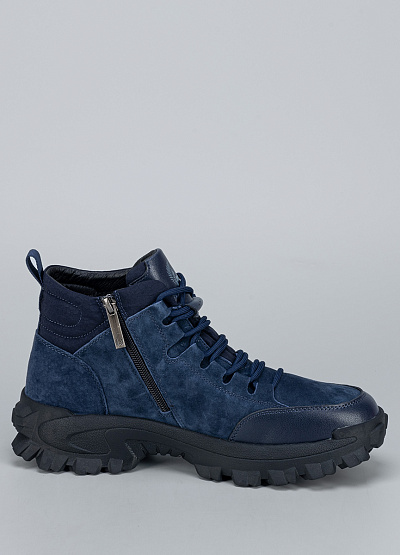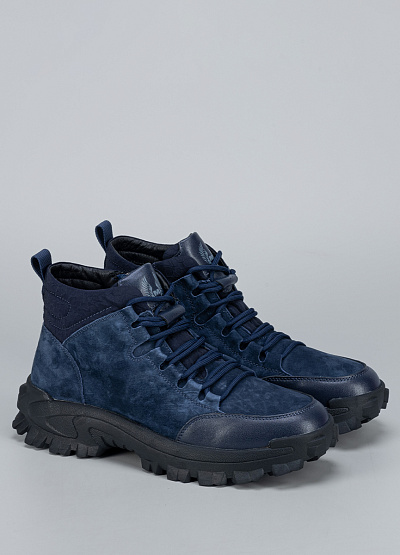 Мужские ботинки Mattini синего цвета — стильная и функциональная модель в современном outdoor-дизайне. Выполнены из натуральной замши с гладкими кожаными вставками, что придает обуви выразительный внешний вид и дополнительную прочность. Массивная подошва с глубоким протектором обеспечивает уверенное сцепление с поверхностью, а мягкий воротник и шнуровка гарантируют комфорт и плотную посадку стопы.