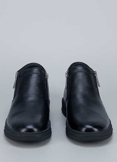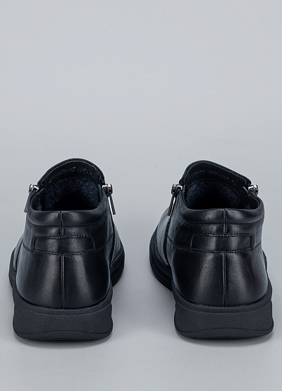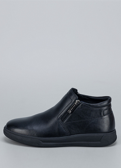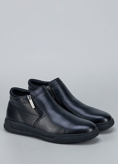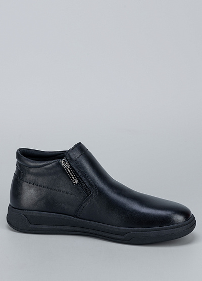 Мужские ботинки в лаконичном дизайне, выполненные из гладкой чёрной искусственной кожи — это идеальный выбор для холодного сезона. Модель отличается удобством и практичностью: боковая молния облегчает надевание, а мягкая подкладка из искусственного меха обеспечивает комфорт и тепло. Подошва из ТЭП гарантирует устойчивость и амортизацию при ходьбе. Универсальный силуэт делает обувь подходящей как для делового, так и для повседневного стиля.