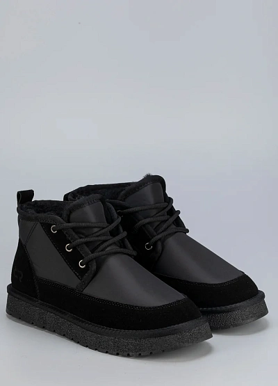 • Удобные зимние ботинки угги Crosby созданы для комфорта и надежной защиты в холодное время года. Модель выполнена в практичном черном цвете, дополнена утеплителем и прочной подошвой с протектором. Лаконичный дизайн с комбинированными материалами и аккуратной шнуровкой делает ботинки универсальными — они легко сочетаются как с повседневной, так и с более строгой одеждой.