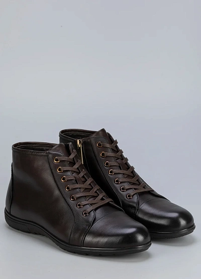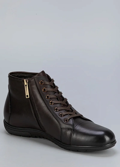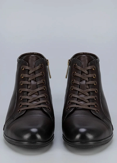 • Эта модель мужских кроссовок Duca Daretti в темно-коричневом цвете сочетает в себе практичность, сдержанную элегантность и удобство. Высокий силуэт обеспечивает дополнительную защиту и тепло, а гладкая матовая кожа придаёт обуви деловой, но в то же время универсальный внешний вид. Боковая молния упрощает надевание, сохраняя при этом целостность дизайна.