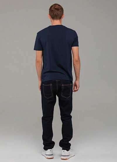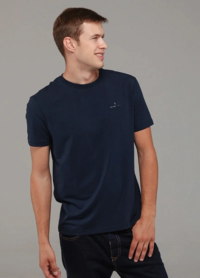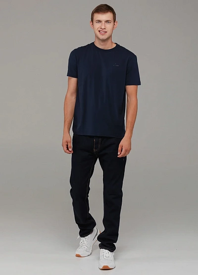 • Стильная и удобная мужская футболка выполнена из мягкого хлопкового материала в тёмно-синем цвете.