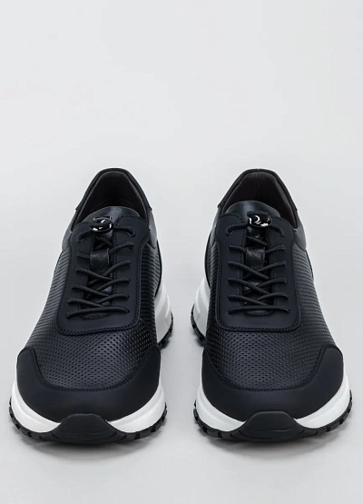Универсальные мужские кроссовки в черно-белой цветовой гамме. Модель отличается лаконичным дизайном, перфорированной текстурой боковой части и классической шнуровкой.