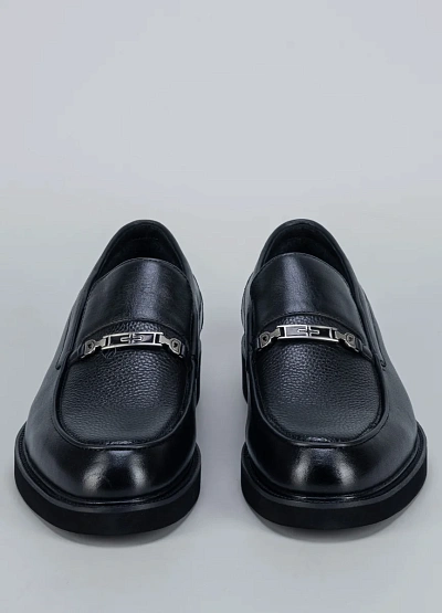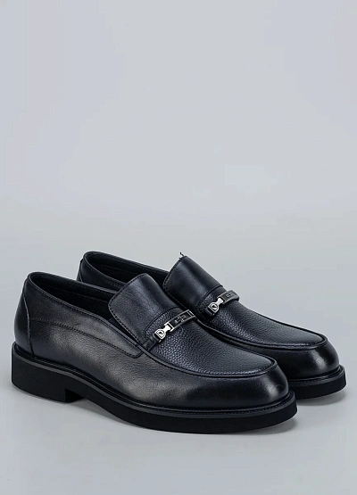 Мужские лоферы Duca Daretti — элегантная модель в классическом исполнении, созданная для ценителей итальянского стиля и комфорта. Обувь выполнена из натуральной кожи высокого качества в чёрном цвете с лёгким матовым блеском. Акцентом служит металлическая пряжка с логотипом бренда, добавляющая статусности образу.