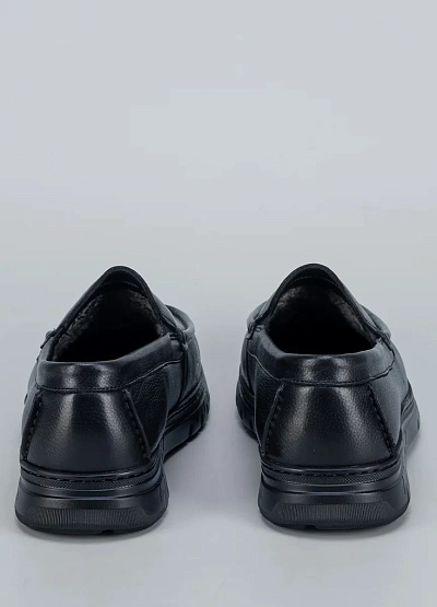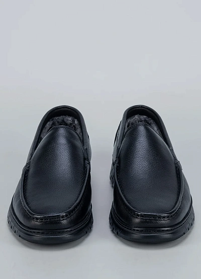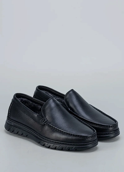 Мужские утеплённые мокасины Duca Daretti — практичная обувь для холодного времени года. Модель выполнена из гладкой чёрной кожи и дополнена мягким меховым подкладом, который обеспечивает тепло и комфорт даже в мороз. Лаконичный дизайн без шнуровки делает обувь удобной и универсальной для повседневного стиля.