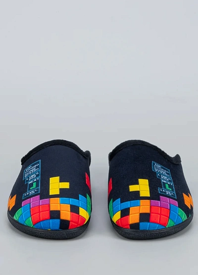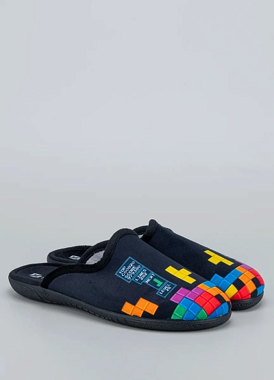 • Мужские домашние тапочки Alberola в темно-синем цвете с ярким принтом «Тетрис» — идеальное сочетание уюта и игривого стиля. Открытая пятка обеспечивает удобство при использовании, а мягкая внутренняя подкладка дарит тепло и комфорт. Легкая и гибкая подошва делает модель практичной для ежедневного ношения.