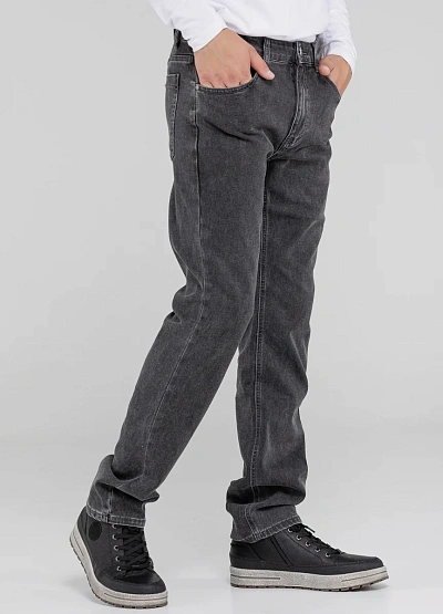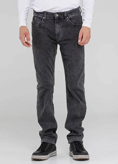 • Классические мужские джинсы в сером цвете с лёгким эффектом выварки.