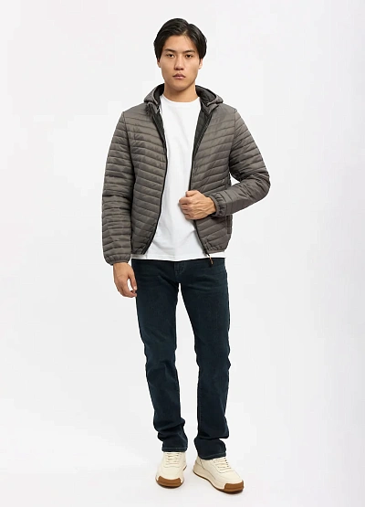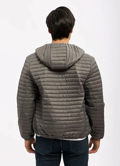 Мужская стёганая куртка в универсальном сером цвете — практичный и стильный выбор для повседневного гардероба. Лёгкий утеплитель обеспечивает комфорт в прохладную погоду, а аккуратная горизонтальная простёжка придаёт модели современный и лаконичный вид. Куртка дополнена удобным капюшоном, застёжкой на молнию и функциональными боковыми карманами. Идеально вписывается в городской стиль и подходит для активного ритма жизни.