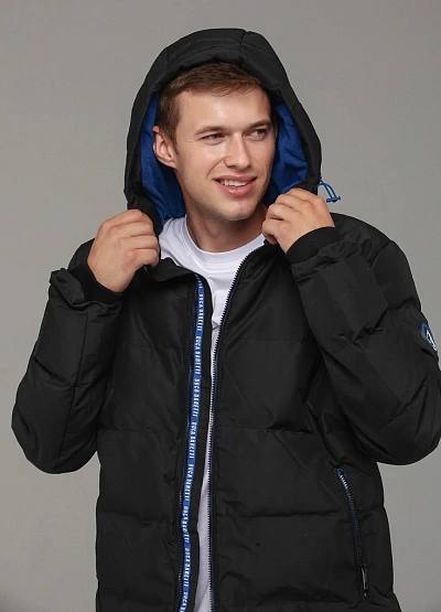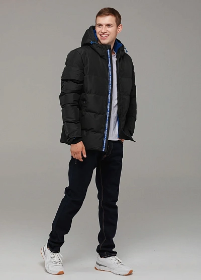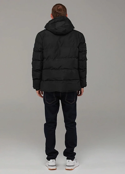 • Тёплая и практичная мужская куртка выполнена в чёрном цвете и дополнена утеплителем, который надёжно защищает от холода.