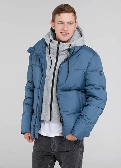 — Цвет: синий с серым капюшоном