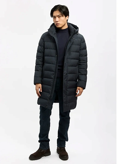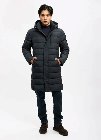• Мужская удлинённая стёганая куртка с капюшоном — практичное решение для холодного сезона. Модель выполнена в лаконичном тёмном цвете, отличается аккуратной горизонтальной простёжкой и прямым силуэтом, который обеспечивает комфорт и свободу движений. Куртка хорошо сохраняет тепло, защищает от ветра и подходит для повседневного городского использования. Капюшон добавляет функциональности, а удобные карманы делают модель практичной для ежедневной носки.