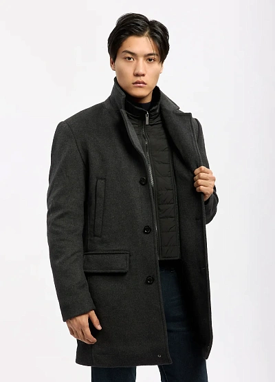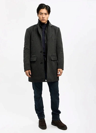 Мужское утеплённое пальто выполнено в лаконичном классическом стиле и станет универсальным элементом гардероба для холодного сезона. Прямой крой подчёркивает аккуратный силуэт, а плотный материал обеспечивает комфорт и защиту от прохлады. Модель дополнена внутренней застёжкой-молнией и внешней застёжкой на пуговицы, что повышает теплоизоляцию и удобство носки. Строгий дизайн позволяет сочетать пальто как с повседневными, так и с более формальными образами.