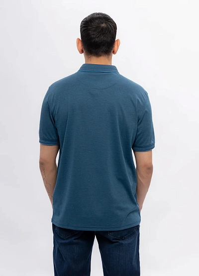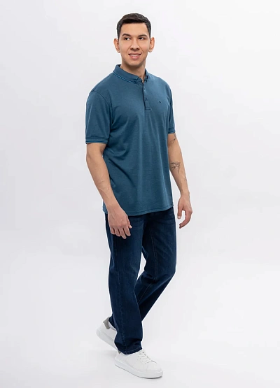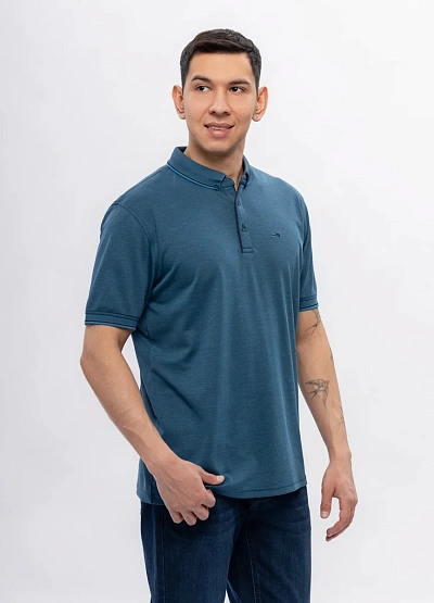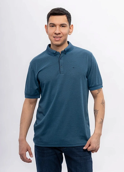 Мужское поло в классическом стиле выполнено в насыщенном синем цвете. Модель имеет прямой крой, короткие рукава и аккуратный воротник на пуговицах, что придаёт изделию лаконичный вид.