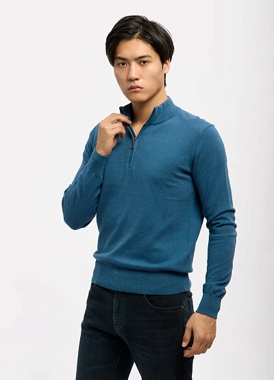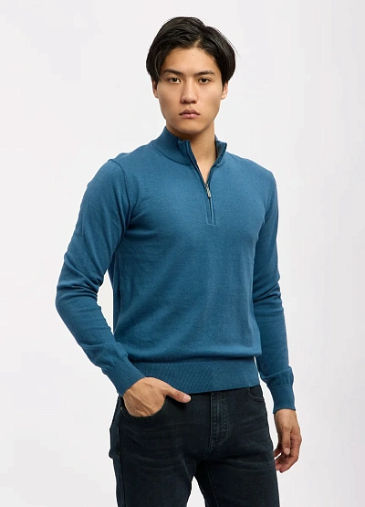 Мужской джемпер с короткой молнией выполнен в насыщенном синем оттенке и отличается лаконичным, аккуратным дизайном. Модель из мягкого трикотажа обеспечивает комфортную посадку и приятные тактильные ощущения при носке. Воротник-стойка с молнией добавляет практичности и позволяет адаптировать образ под разные ситуации — от более строгого до расслабленного. Универсальный крой делает джемпер отличной основой повседневного и smart casual гардероба.
