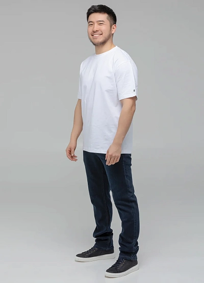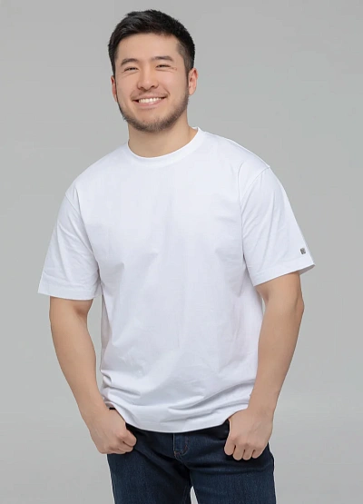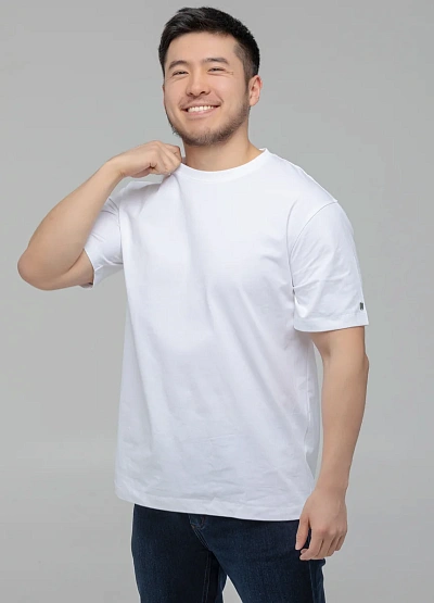 Мужская футболка прямого кроя выполнена в однотонной белой цветовой гамме. Модель отличается классическим силуэтом с короткими рукавами и круглым вырезом.