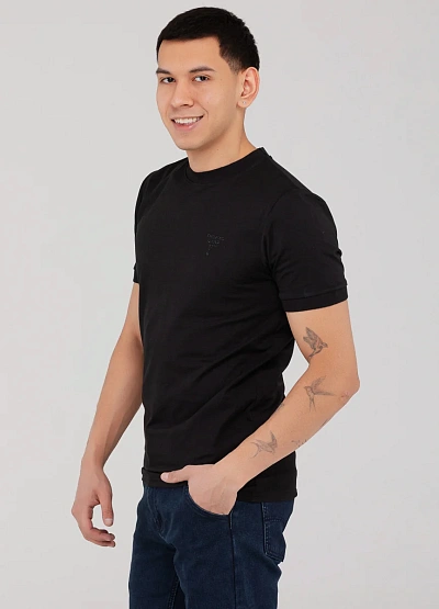 • Стильная мужская футболка чёрного цвета — универсальный выбор на каждый день.