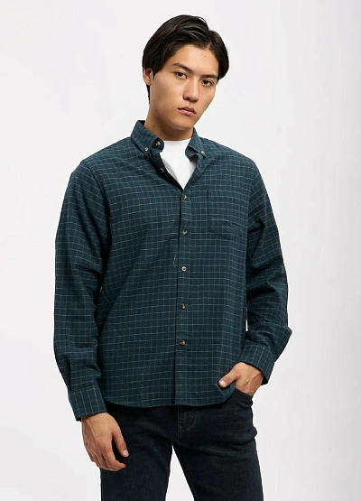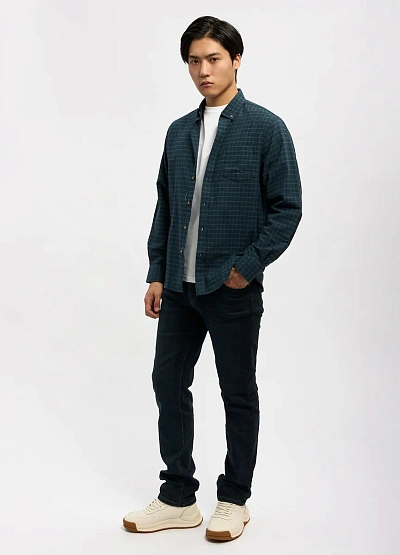 Мужская рубашка в мелкую клетку в тёмно-зелёно-синем оттенке — практичная и сдержанная модель для повседневного гардероба. Прямой классический крой обеспечивает комфортную посадку и удобство при носке, а мягкая ткань делает рубашку подходящей для ежедневного использования. Универсальный дизайн позволяет легко сочетать модель с джинсами или брюками, а также использовать её в многослойных образах с базовой футболкой.