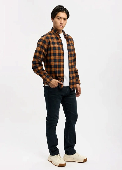 Мужская рубашка в клетку выполнена в классическом повседневном стиле и подойдёт для создания аккуратных и практичных образов. Модель отличается универсальным прямым кроем, который обеспечивает комфортную посадку и свободу движений. Клетчатый рисунок в тёплой цветовой гамме делает рубашку выразительной и легко сочетаемой с базовым гардеробом. Подходит для ношения как самостоятельно, так и в многослойных образах с футболкой или лонгсливом.