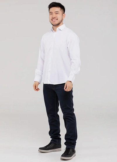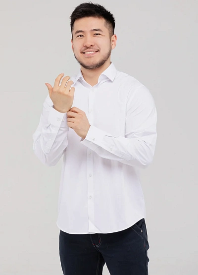 Мужская классическая рубашка в белом цвете — универсальный элемент базового гардероба. Модель выполнена в лаконичном дизайне без лишних деталей, что делает её идеальным выбором для деловых и повседневных образов. Рубашка аккуратно сидит по фигуре, подчёркивая силуэт, и обеспечивает комфорт при длительной носке. Белый цвет легко сочетается с брюками, джинсами и пиджаками различных оттенков.