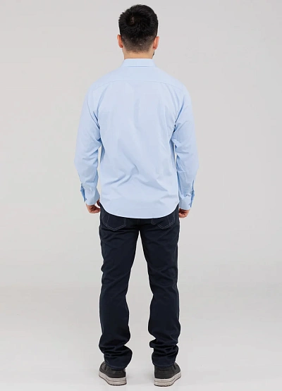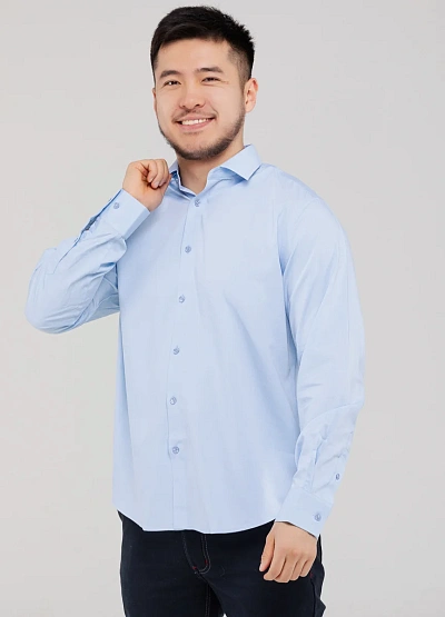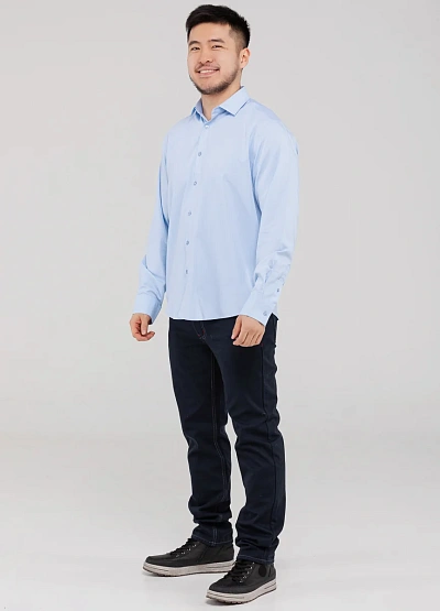 Мужская рубашка классического кроя выполнена в светло-голубом оттенке, который легко вписывается как в деловой, так и в повседневный гардероб. Модель аккуратно сидит по фигуре, подчёркивая силуэт, и обеспечивает комфорт в течение всего дня. Универсальный дизайн позволяет сочетать рубашку с брюками, джинсами или пиджаком, создавая аккуратный и опрятный образ.