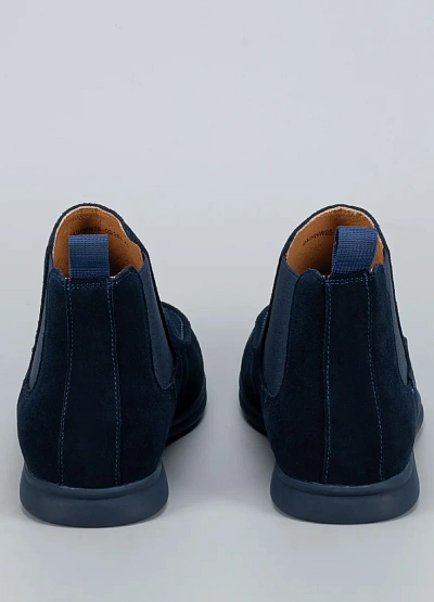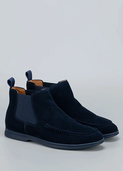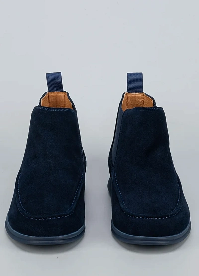 • Мужские ботинки челси из замши Duca Daretti в темно-синем оттенке — стильное решение для повседневного гардероба. Классический силуэт с эластичными вставками обеспечивает удобство при надевании, а мягкая замша придает обуви благородство и современный характер. Лаконичный дизайн делает модель универсальной и подходящей для различных образов.