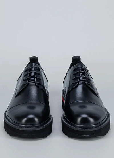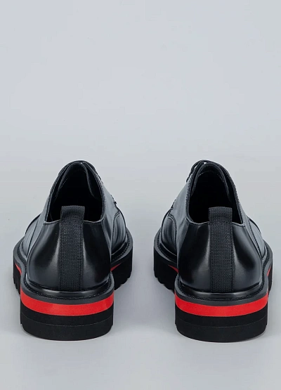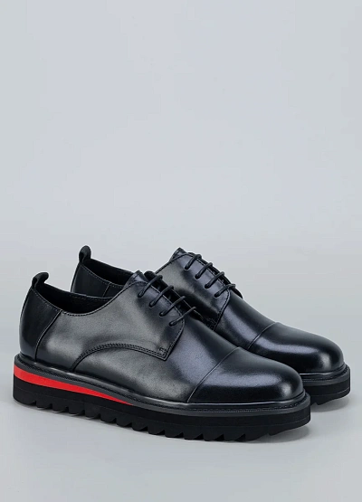 • Мужские туфли Duca Daretti в черном цвете с контрастной полосой на подошве — элегантная классика с современным акцентом. Лаконичный верх из гладкой кожи подчеркивает строгость и универсальность модели, а утолщенная подошва с зубчатым протектором обеспечивает комфорт и практичность. Красная вставка по периметру подошвы добавляет стильный и дерзкий штрих.