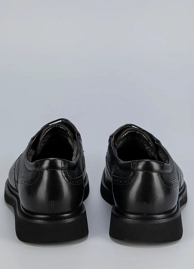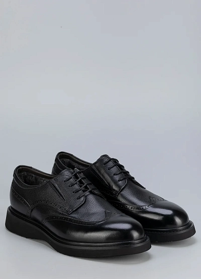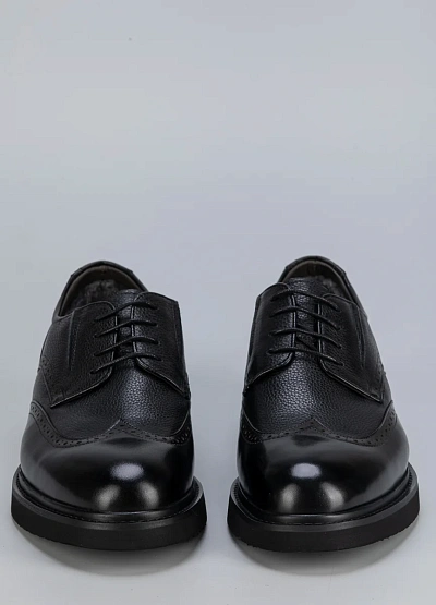 • Классическая модель туфлей Duca Daretti для мужчин, выполненная из фактурной чёрной кожи с перфорацией на мыске. Эти туфли подойдут как для деловых встреч, так и для повседневного гардероба, благодаря удобной колодке и утеплённой подкладке. Контрастный рельеф подошвы добавляет современный штрих в традиционный дизайн.