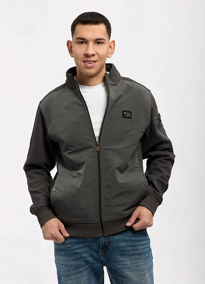 • Мужская куртка в стиле casual от бренда Thomas Graf выполнена в сдержанном серо-графитовом оттенке и отлично подойдёт для повседневного гардероба. Модель сочетает в себе элементы лёгкой куртки и олимпийки: стёганная передняя часть придаёт образу структуру, а трикотажные рукава обеспечивают комфорт и свободу движений. Застёжка-молния и воротник-стойка делают изделие практичным для прохладной погоды, а фирменные нашивки подчёркивают современный характер модели.