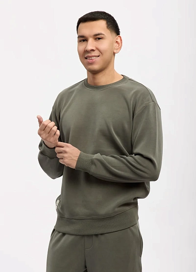 • Мужской свитшот в универсальном оливковом оттенке, выполненный в стиле casual. Модель отличается лаконичным дизайном и комфортной посадкой, что делает её отличной базой для повседневного гардероба. Мягкий трикотаж приятен к телу и хорошо сохраняет форму, а классический круглый вырез и эластичные манжеты обеспечивают удобство при носке и аккуратный внешний вид.