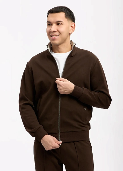 • Мужская толстовка в глубоком коричневом оттенке — стильное и практичное решение для повседневного гардероба. Лаконичный дизайн и аккуратный силуэт делают модель универсальной: она легко вписывается как в спортивные, так и в casual-образы. Мягкий трикотаж обеспечивает комфорт в течение всего дня, а застёжка-молния добавляет удобство и функциональность.