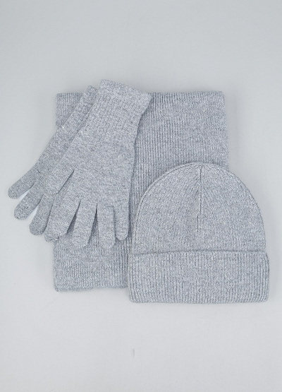 Уютный зимний комплект в светло-сером цвете — идеальный выбор для холодного сезона. В набор входят мягкая шапка, длинный теплый шарф и классические перчатки, выполненные из приятной на ощупь эластичной вязки. Материал хорошо удерживает тепло, не раздражает кожу и обеспечивает комфорт при ежедневной носке. Лаконичный дизайн делает комплект универсальным и подходящим как для повседневных образов, так и для более строгих сочетаний.