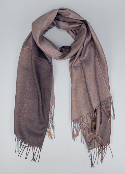 Элегантный шарф с плавным переходом оттенков — от дымчато-серого к тёплому таупу — подчёркивает утончённость образа и подходит для любых случаев. Лёгкая, тактильно приятная ткань красиво драпируется и создаёт мягкие складки. Неброский меланжевый эффект придаёт аксессуару глубину, а аккуратная бахрома завершает стильный образ.