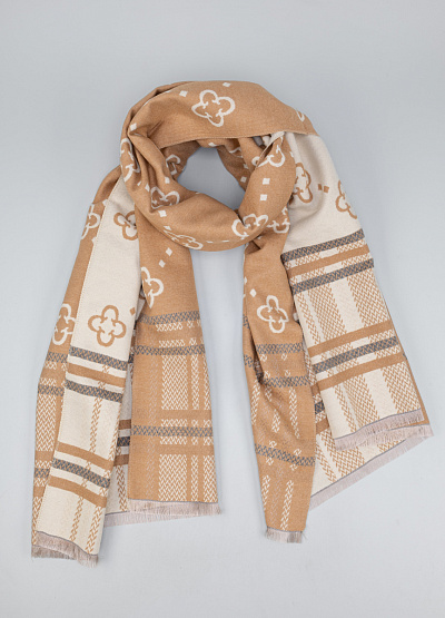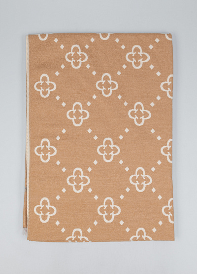 Элегантный двухсторонний шарф в тёплой бежево-молочной гамме сочетает в себе геометрический узор и декоративные символы, создавая стильный и современный образ. Мягкая приятная на ощупь ткань обеспечивает комфорт в носке, а аккуратная короткая бахрома по краям придаёт аксессуару завершённость. Универсальная расцветка легко вписывается как в повседневные, так и в более нарядные образы.