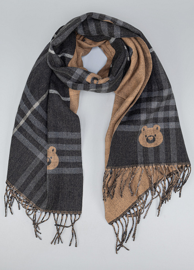 Уютный и стильный шарф в тёмно-серой клетке с забавным медвежонком — отличный выбор для осени и зимы. Мягкая, приятная на ощупь ткань хорошо сохраняет тепло, а двухсторонний дизайн в серо-бежевой гамме делает аксессуар универсальным и легко сочетаемым с разной верхней одеждой. Аккуратные кисточки по краям добавляют шарфу легкость и динамику, а маленькие медвежата придают образу playful-настроение.