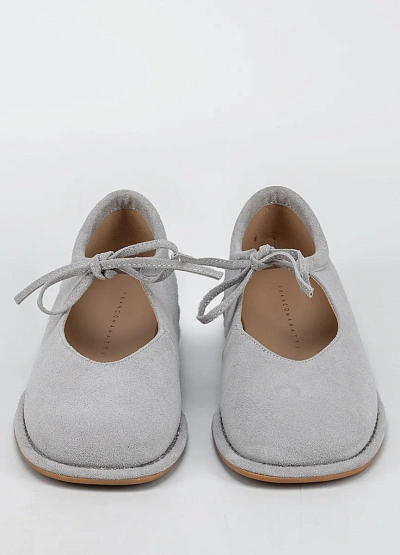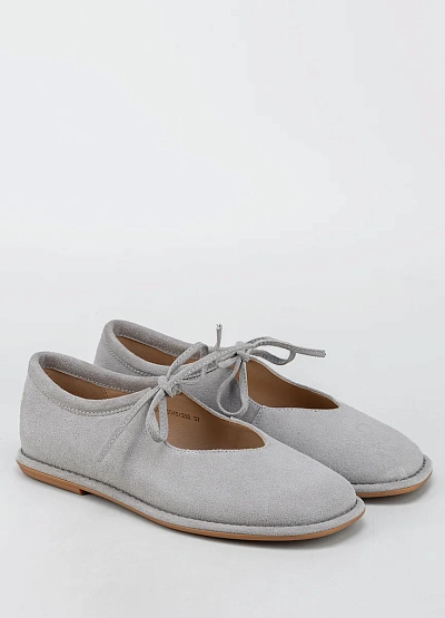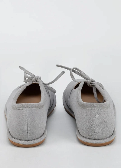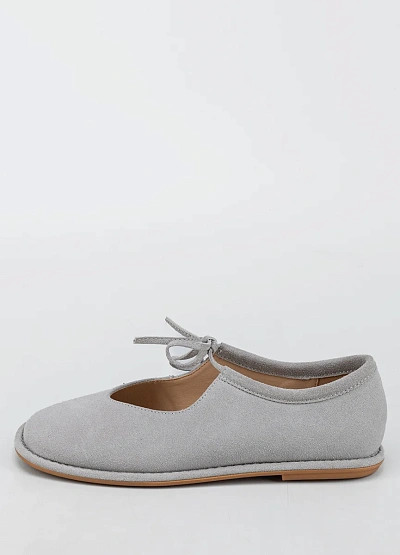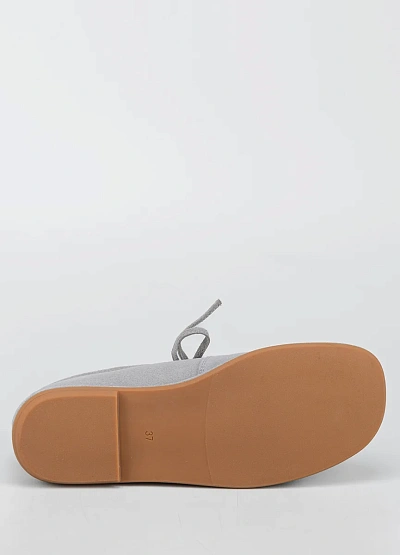Женские балетки светло-серого цвета. Модель выполнена с округлым мысом и небольшим бантом на верхней части, благодаря чему изделие выглядит аккуратно и универсально.