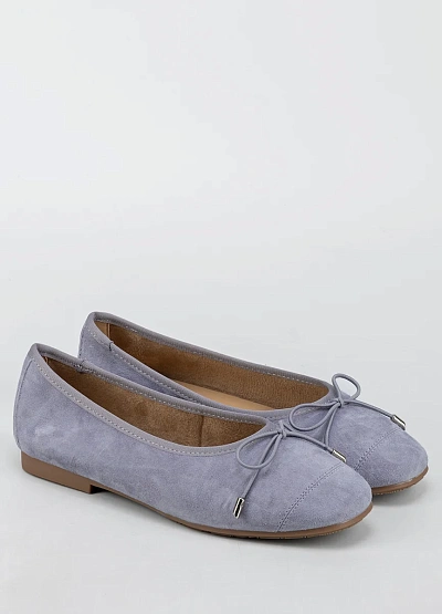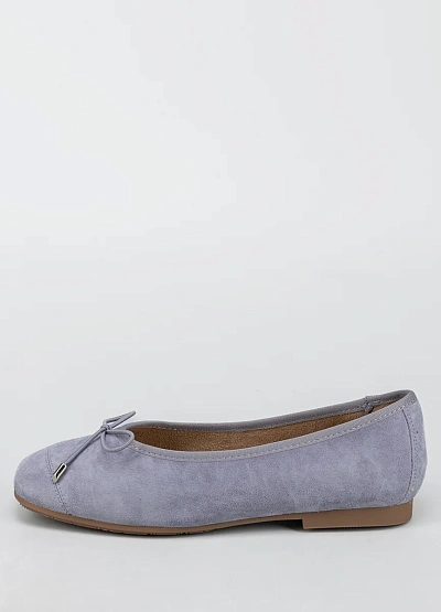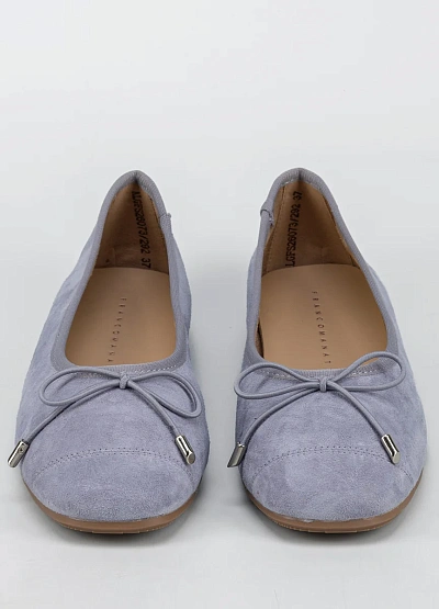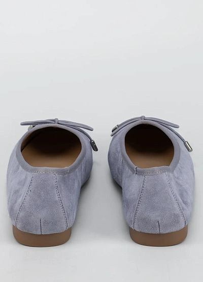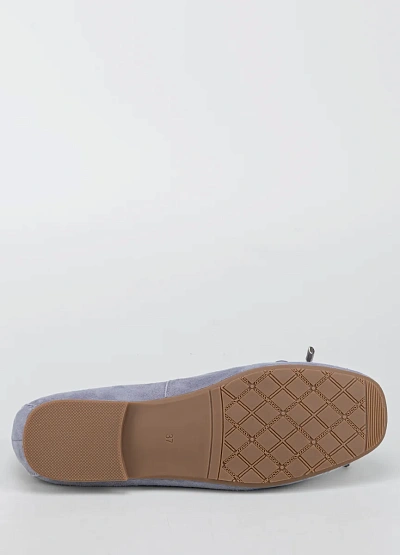 Женские балетки светло-серого цвета с матовой поверхностью представлены в лаконичном дизайне. Модель выполнена в пастельной гамме и украшена аккуратным бантиком на мысе, имеет округлый носок и невысокую подошву.