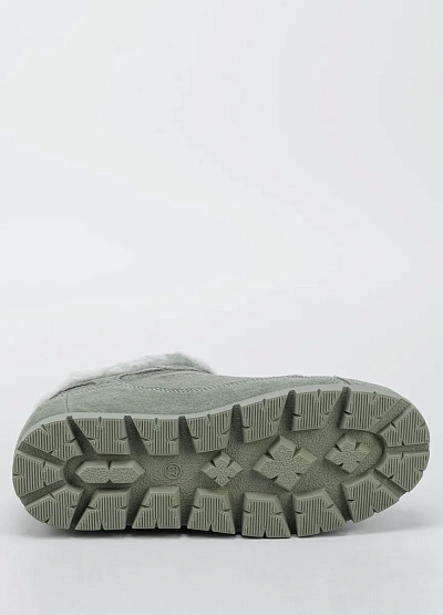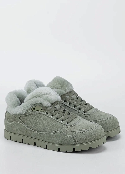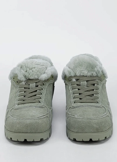 Женские утеплённые кроссовки в спокойном серо-зелёном оттенке станут комфортным решением для холодного сезона. Модель выполнена из мягкой замши и дополнена плотной меховой подкладкой, которая сохраняет тепло и создаёт уют при носке. Шнуровка обеспечивает надёжную фиксацию стопы, а массивная подошва с выраженным протектором повышает устойчивость на скользких поверхностях. Универсальный дизайн легко вписывается в повседневные образы.
