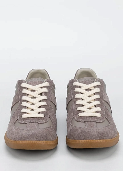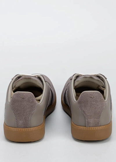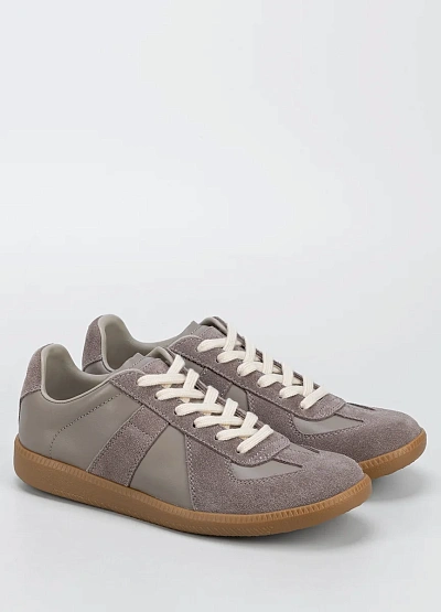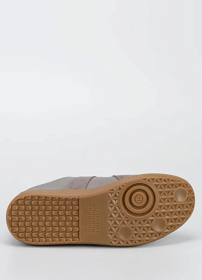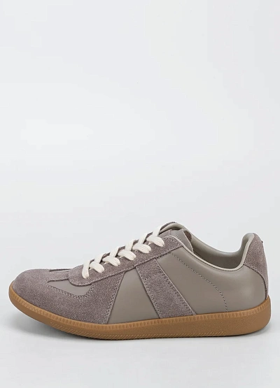 Женские кеды выполнены в спокойной серо-бежевой цветовой гамме. Модель отличается комбинированной отделкой, сочетая гладкие и замшевые элементы, а также контрастной шнуровкой. Классический силуэт делает обувь универсальной для многих образов.