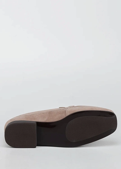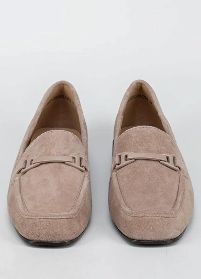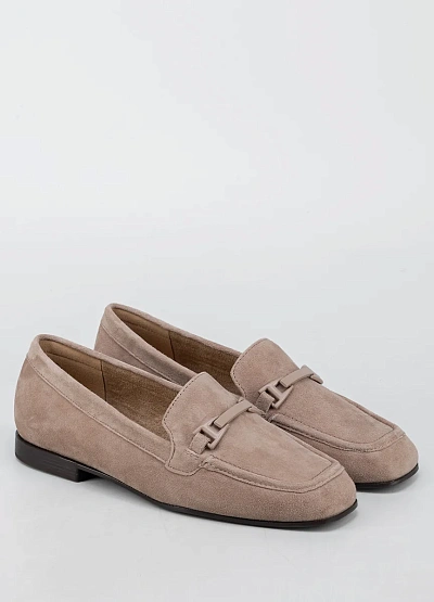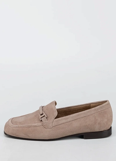 Женские лоферы закрытого типа представлена в универсальной бежевой гамме. Модель с лаконичным дизайном, декорирована изящной пряжкой на верхней части и выполнена на невысоком каблуке.