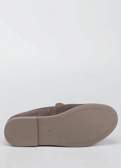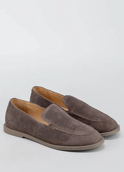 Женские лоферы в коричневой гамме с однотонным дизайном. Модель выполнена с перфорацией по всей поверхности, что придаёт изделию легкость и дышащие свойства. Обтекаемый силуэт и аккуратная строчка создают лаконичный внешний вид.