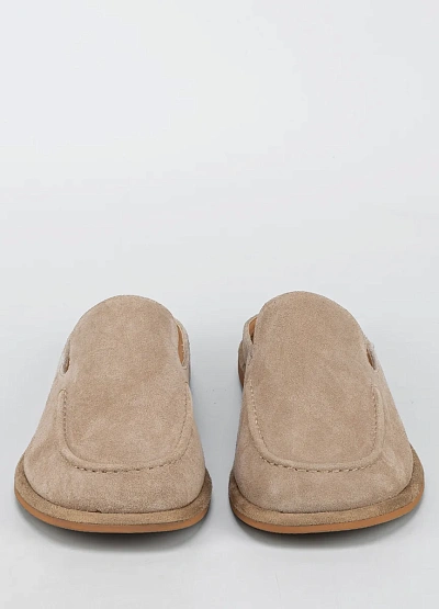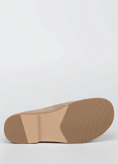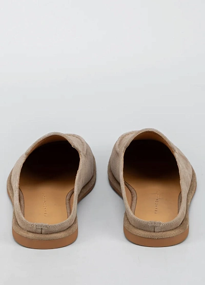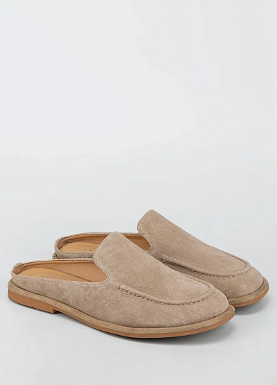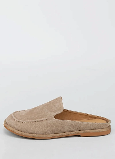 Женские мюли в виде сабо светло-бежевого оттенка. Модель имеет лаконичный дизайн с открытой пяткой и округлым мысом. Отличается минималистичным внешним видом и однотонной расцветкой.