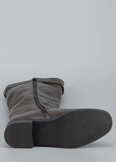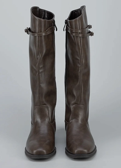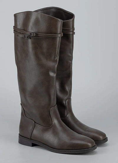 Женские высокие сапоги в классическом стиле — универсальная модель, которая сочетает элегантность, комфорт и практичность. Выполненные из гладкой кожи с мягким матовым блеском, они создают аккуратный вытянутый силуэт. Два тонких декоративных ремешка с миниатюрными пряжками добавляют образу утончённости, не перегружая дизайн. Удобная колодка и низкий устойчивый каблук обеспечивают комфорт при длительном ношении, а высокая голень защищает от ветра и холода.