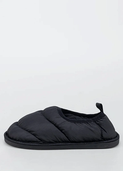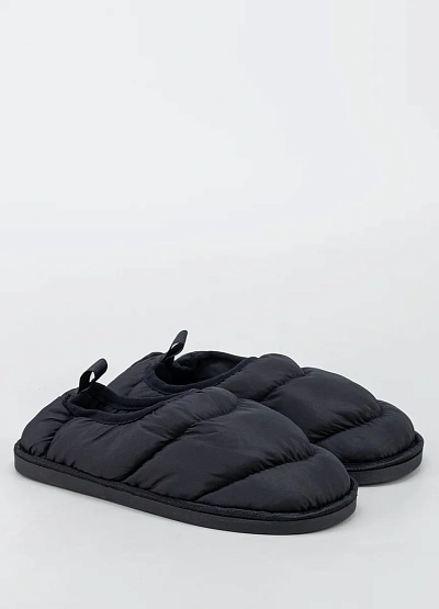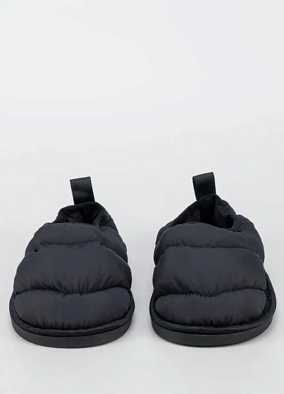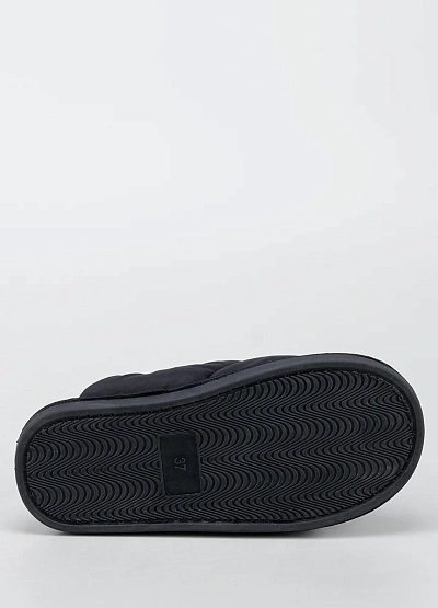 Женские тапочки, выполненная в черном цвете. Модель отличается объемной мягкой отделкой и лаконичным дизайном без лишних деталей, видна петля на пятке для удобства надевания.