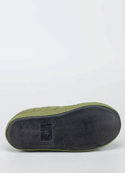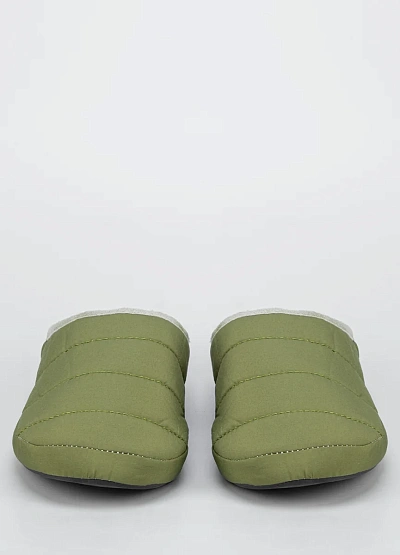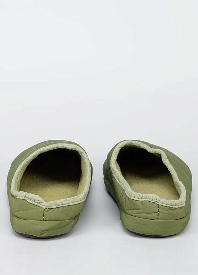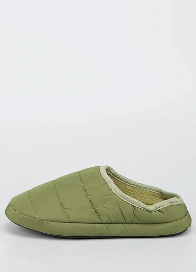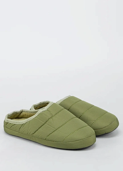 Данная модель подходит для мужчин и предназначена для носки в помещении. Тапочки выполнены в светло-оливковом оттенке, имеют стёганую прострочку и мягкую структуру. Внутренняя часть отделана подкладкой светлого цвета.