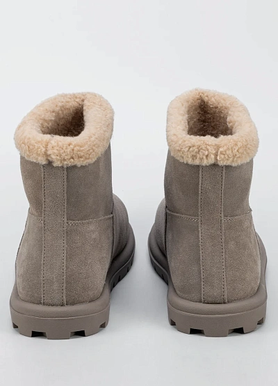 Удобные женские зимние ботинки с лаконичным дизайном и мягкой отделкой созданы для комфортной носки в холодное время года. Модель выполнена из замшевого материала с аккуратными швами и дополнена тёплой меховой окантовкой по верху, которая обеспечивает дополнительный комфорт и уют. Практичная подошва с выраженным протектором повышает устойчивость при ходьбе и делает обувь подходящей для повседневной зимней эксплуатации.