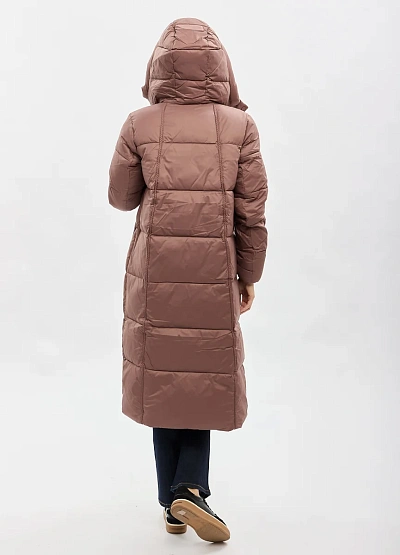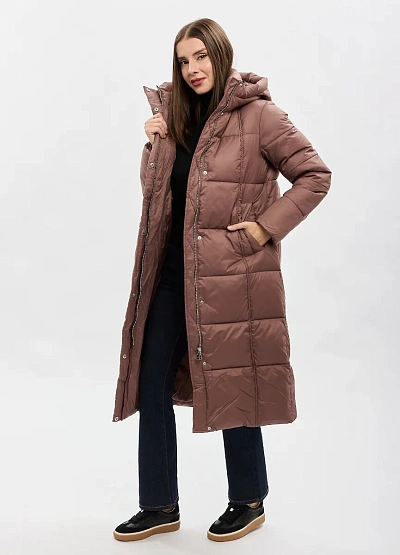 Удлинённое женское пуховое пальто с капюшоном — практичное и элегантное решение для холодного сезона. Модель выполнена в лаконичном дизайне с горизонтальной стёжкой, подчёркивающей силуэт, и обеспечивает комфортную защиту от ветра и холода. Капюшон добавляет уюта и функциональности, а длина ниже колена делает образ более собранным и стильным. Отлично вписывается в повседневный гардероб и легко сочетается с базовой одеждой.