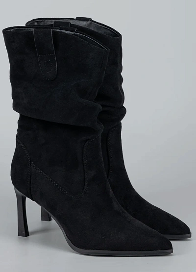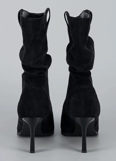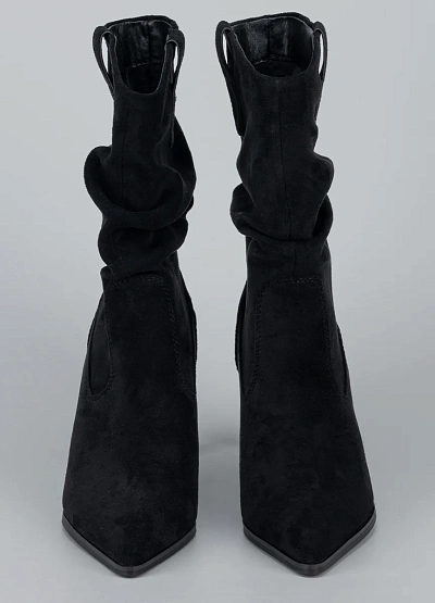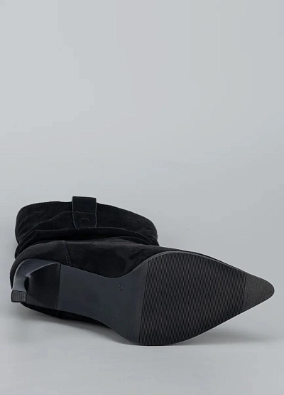 Стильные женские сапоги с эффектом мягкой драпировки — элегантная модель, которая подчёркивает изящество и добавляет образу выразительности. Выполненные из мягкого искусственного велюра, они создают утончённый силуэт, а заострённый носок и высокий каблук визуально вытягивают ноги. Небольшая декоративная петля в верхней части голенища добавляет модели аккуратный акцент. Это идеальный выбор для тех, кто ценит сочетание женственности, комфорта и модной эстетики.