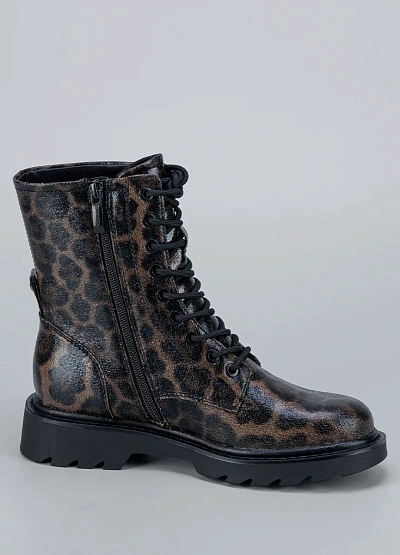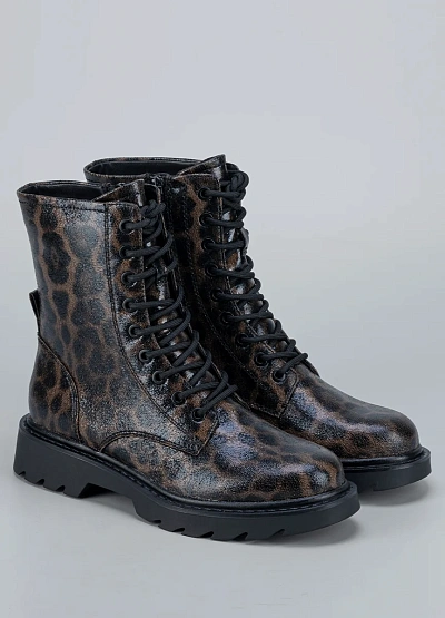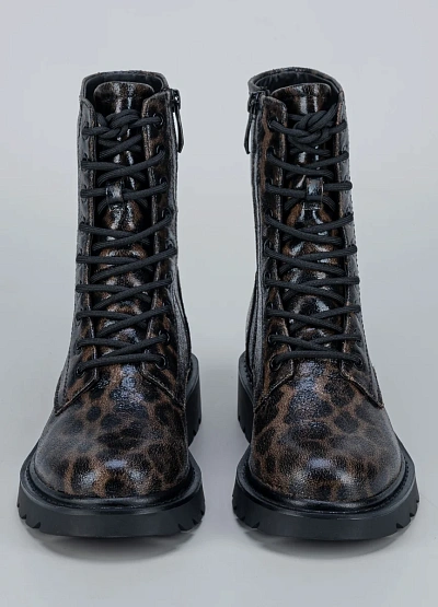 Женские ботинки Tamaris с леопардовым принтом — смелый акцент в любом образе. Модель выполнена из лаковой кожи, устойчива к износу и влаге. Массивная подошва и плотная шнуровка обеспечивают комфорт и уверенность при ходьбе.