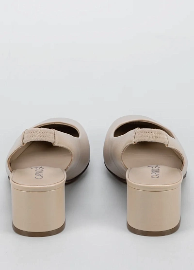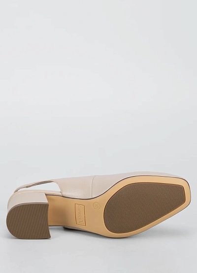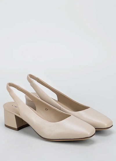 • Женские туфли слингбэки светлого оттенка выполнены в лаконичном дизайне. Модель на невысоком устойчивом каблуке с открытой пяткой и закрытым носком. Нейтральная цветовая гамма подходит для множества образов.